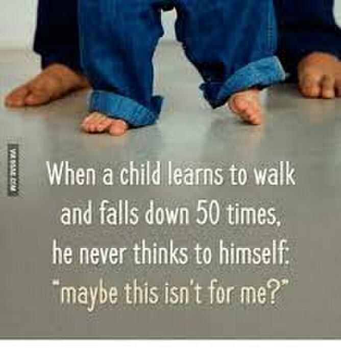 A child keeps getting up and trying again – until the job is done , or in this case until the skill is learned.